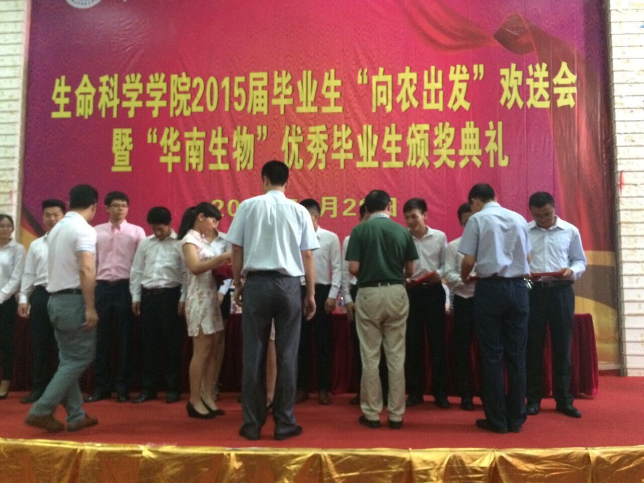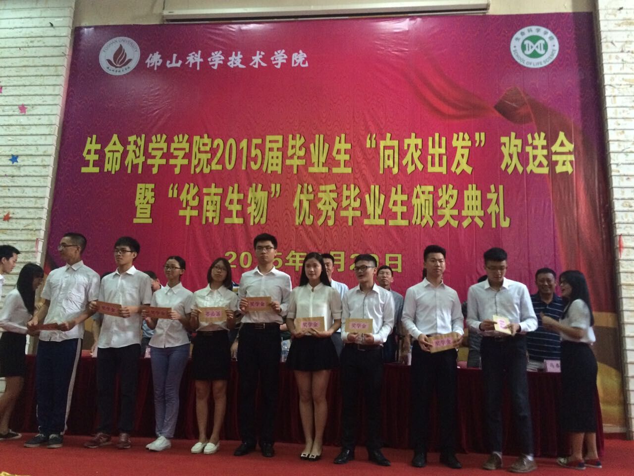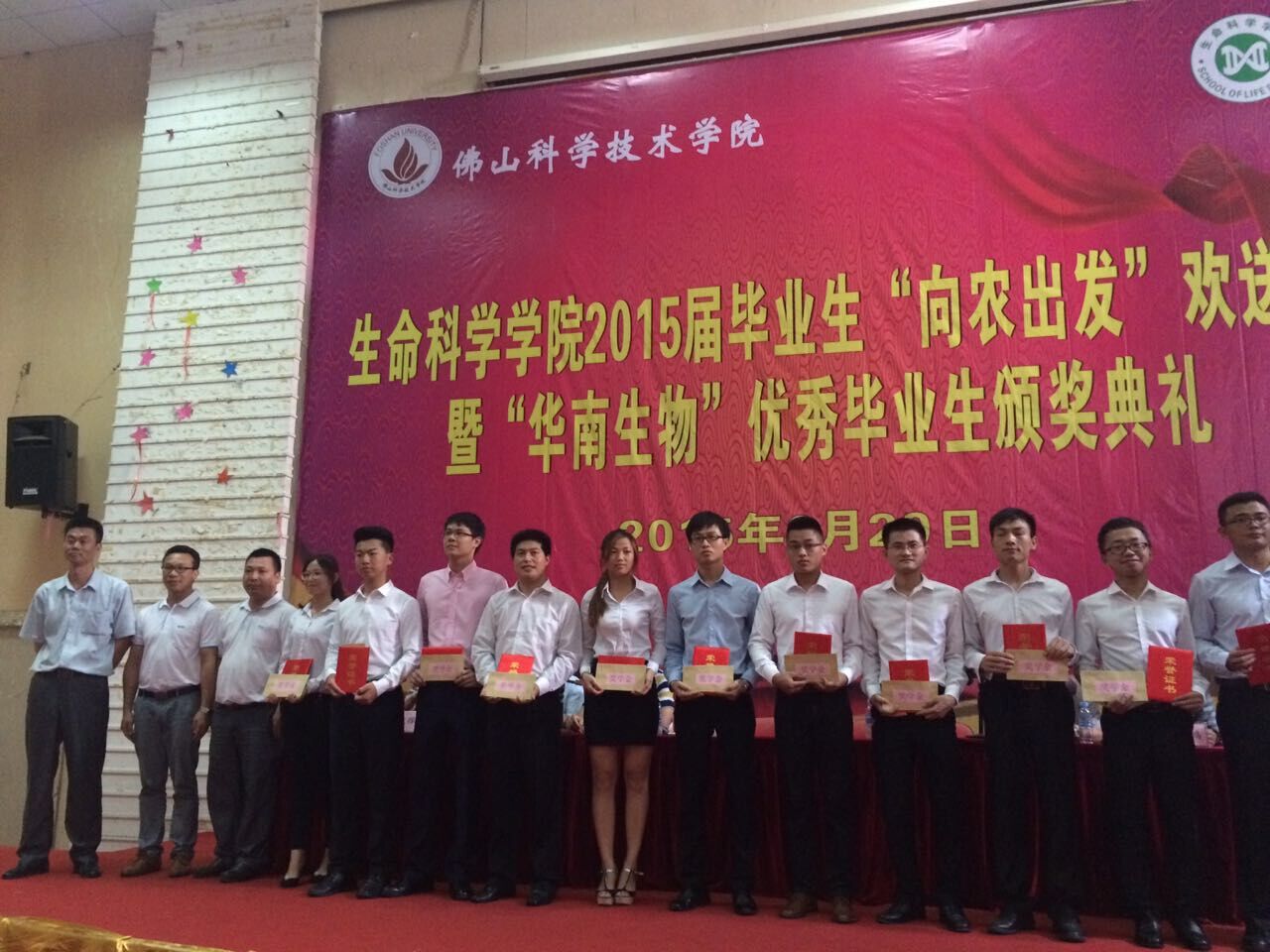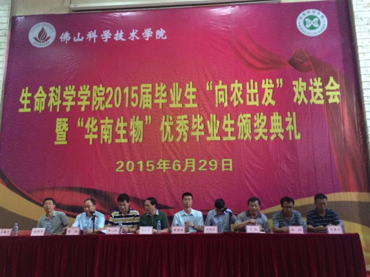 2015年6月29日下午佛山科學(xué)技術(shù)學(xué)院生命科學(xué)學(xué)院2015屆畢業(yè)生“向農(nóng)出發(fā)”歡送會暨“華南生物”優(yōu)秀畢業(yè)生頒獎典禮在北院圖書館一樓報告廳舉行。佛山科學(xué)技術(shù)學(xué)院生命科學(xué)學(xué)院院長王炳云、書記甘蔭全等學(xué)院領(lǐng)導(dǎo)、廣州市華南農(nóng)大生物藥品有限公司副總經(jīng)理黃國城、班主任、嘉賓、全體畢業(yè)生出席并參加了畢業(yè)生頒獎典禮。