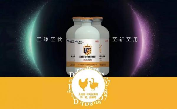 禽流感病毒H5亞型滅活疫苗(D7株+rD8株)“禽盾”適用于水禽和家禽,是針對多分支的H5亞型禽流感的二價滅活疫苗,于2017年3月獲得農業部新獸藥注冊證書【(2017)新獸藥證字10號】。該產品選用D7株和rD8株作為疫苗毒株,其中D7株是華南農業大學廖明教授團隊于2007年廣東發病鴨群分離,為H5和H9天然重組而產生的天然野毒株,對不同時期的Clade2.3.2均有良好的保護力,對水禽保護效果良好;rD8株為重組病毒,是以D7株為骨架,選用目前流行的H5N1亞型禽流感病毒CG1株(Clade 2.3.4.4)作為HA基因供體利用反向遺傳技術獲得,為全禽源禽流感病毒,具有高效的雞胚增殖能力,以及良好的家禽免疫良性。針對目前國內流行的Clade 2.3.4.4和Clade 2.3.2.1分支的H5亞型禽流感病毒,產品的抗原性可以實現全覆蓋,具有良好的交叉保護作用,對雞和水禽均有良好的安全性和免疫效力。經過多次臨床試驗證明,禽流感病毒H5亞型滅活疫苗(D7株+rD8株)可有效預防家禽感染H5亞型禽流感。