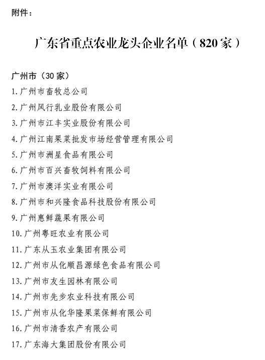 近日,廣東省農業廳下發粵農【2018】49號文件關于公布廣東省重點農業龍頭企業名單的通知,廣州市華南農大生物藥品有限公司晉升為廣東省重點農業龍頭企業,此次廣東省有820家企業獲此殊榮,其中廣州市企業有30家。