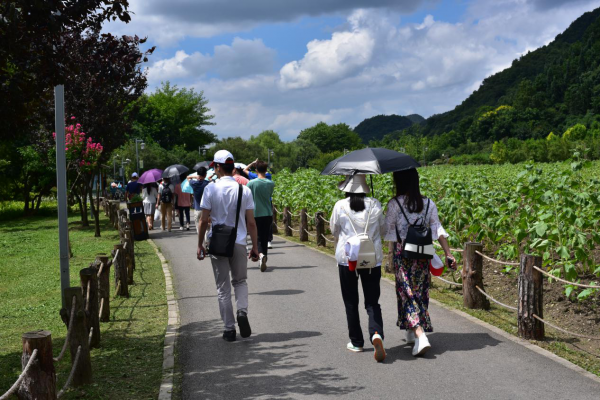 進入景區,小伙伴們漫步在濕地公園,置身在鳥語花香中,猶如進入世外桃源,慢木蒼翠,河流、濕草甸、水稻田,一切充滿了鄉間野趣,夏天荷葉田田,最惹人愛。
